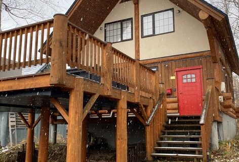 A fashionable Scandinavian log house with a view of Mt. Yotei.